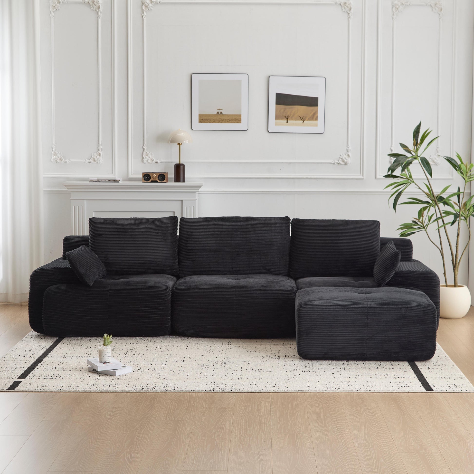 Upgrade your home with this Modern Memory Foam Compressed Sofa — a spacious 3-seat cloud modular sectional wrapped in soft, pet-friendly black corduroy. Designed for effortless comfort, it arrives fully assembled and features high-density memory foam that contours to your body for long-lasting, cloud-like support. The flexible modular design allows you to create endless layout options, making it perfect for living rooms, apartments, bedrooms, or guest spaces. Easy to move through tight hallways and simple to maintain, this extra-deep black sectional brings modern style, versatility, and cozy comfort to any home.